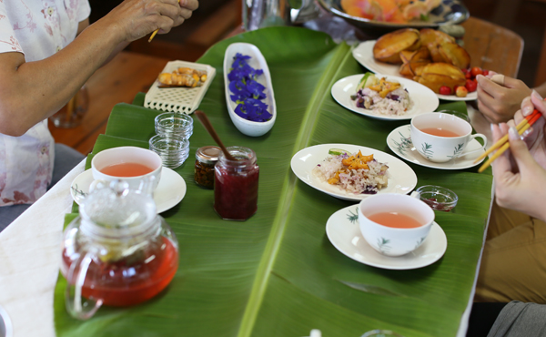 這個守護海的環保組織,為了預防田地的泥土流進海中,在田地周圍進行植林,讓植物擋住泥水,接著他們靈機一動,把植物做成商品,比方說用各種葉子設計葉子便當、花草茶等等,有些島上的婆婆還因此開始做起便當生意。
