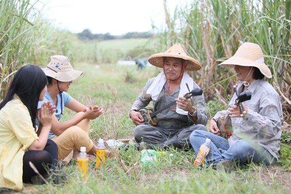聽到三味線的音樂響起,甘蔗田的氣氛瞬間改變,從前沖繩農夫們邊下田邊唱歌,讓繁重的農務看起來一派輕鬆,這就是標準的沖繩風格