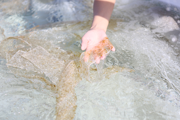 沖繩養殖水雲的技術也相當發達,先將「水雲帶」放到海裡,讓海中的小水雲附著後,再移至引進海水的養殖池裡,育苗等到生長到一定程度,再放回海邊讓它繼續生長,前後約需四個月。這種「暫時離家」的養殖方式,讓沖繩水雲的產量維持安定,不需等到產季,整年都能吃到安心的安全的水雲料理。