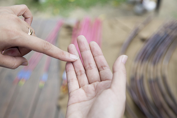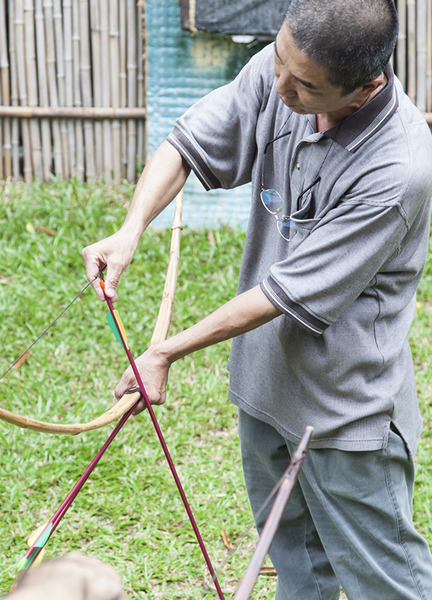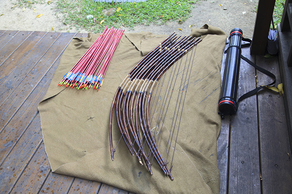每人拿三支箭,要如照片中這樣,用左手抓在弓的前方。