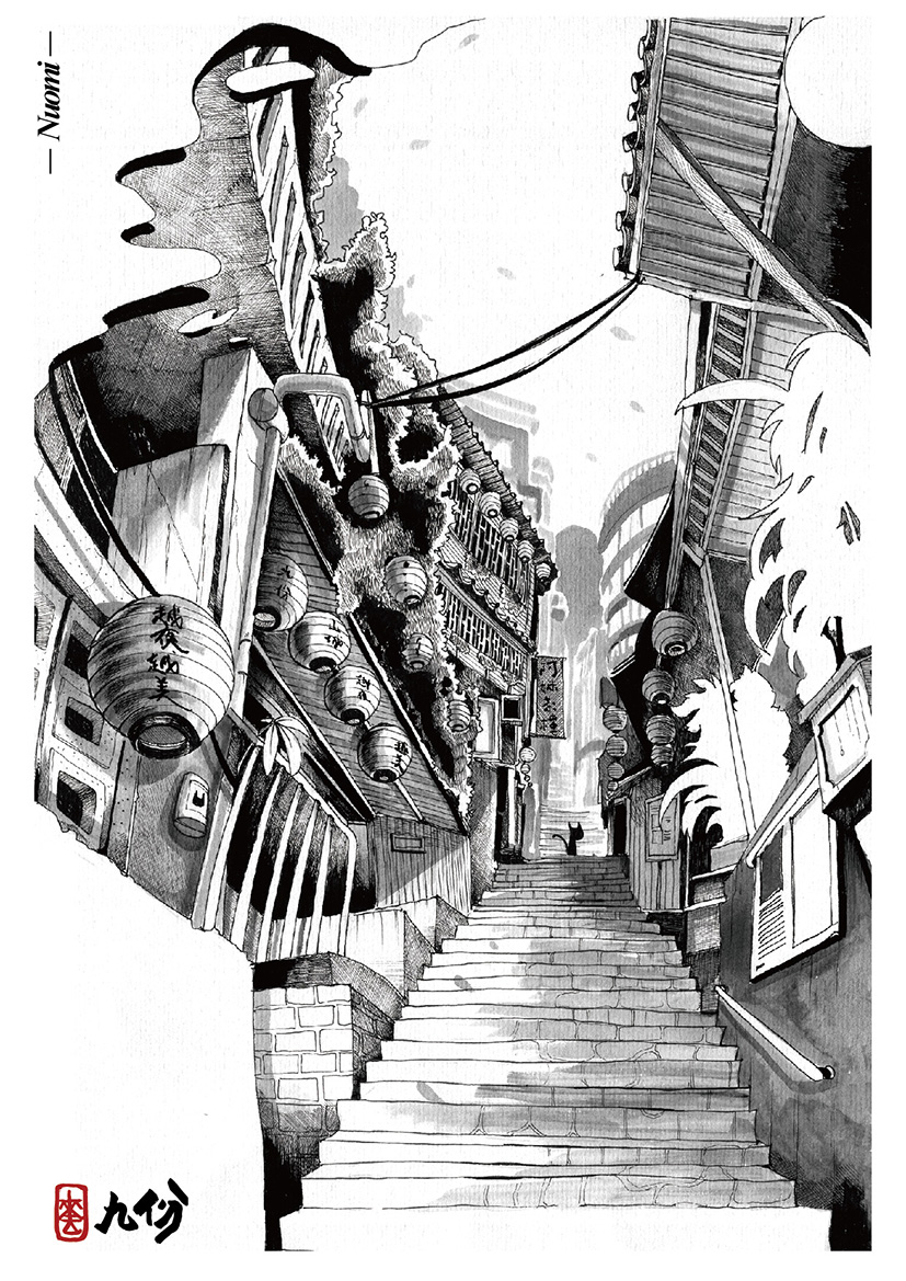『貓老闆』和『阿福』就像遊戲中的虛擬角色,代替我們進入不一樣的台灣,一個沒有喧鬧觀光客、可以靜下心來細細品味的美麗台灣,然而九份只是整個《旅遊地圖》的第一站,Nuomi 打算將故事擴展到其它知名觀光景點,將它們轉換成獨一無二、充滿手感溫度的插畫旅遊誌,看著熟悉的景色變成如此寧靜優美的畫作,老實說內心實在很感動阿!更多作品可到 Nuomi 的粉絲頁即時追蹤喔~