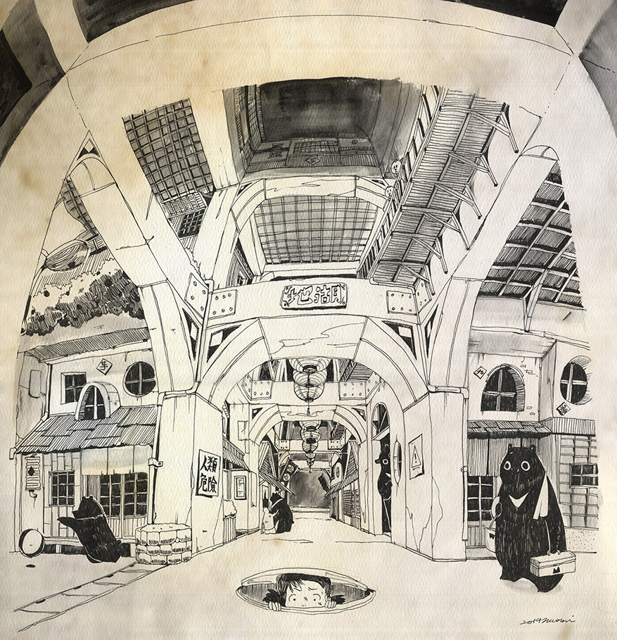 擅長在平面圖像中營造空間感,Nuomi 的作品像是真實世界的複刻版,用第一視角勾勒各種線條,遠近高低錯落有致,畫面邊緣還巧妙地製造出變形效果,彷彿有個人就站在畫面中的最角落,親自用相機捕捉眼前的畫面!