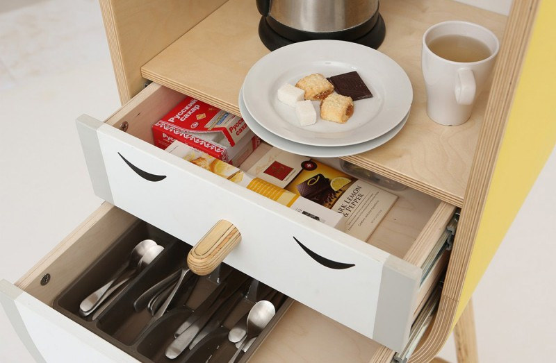 Aotta Studio 由 Tanya Repina 和 Misha Repin 共同成立,也因為兩人認為適當的休息時間也是工作中重要的一環,因此一起設計出微型廚房,並起還給它取了一個可愛的名字LO-LO。為了節省空間 LO-LO 的外觀採橢圓形的膠囊狀設計,一個微型廚房由2~3個不同的櫃子所組成,讓人依自己的需求進行組合。