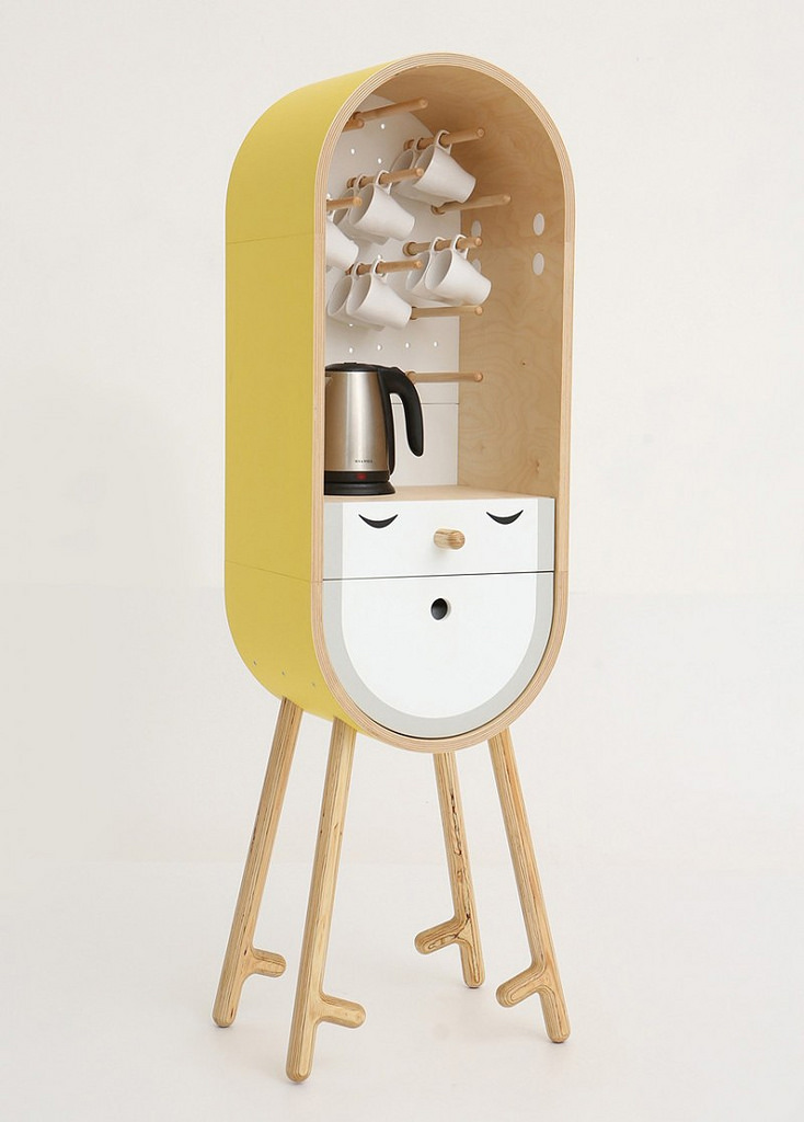 除了實用收納功能外,外觀當然也是很重要的囉!設計師以卡通中的Q版鳥做為LO-LO的造型設計,替木櫃加上了眼睛、嘴巴及鳥仔腳,這麼卡哇伊的造型,一看就讓人心情大好呀XD