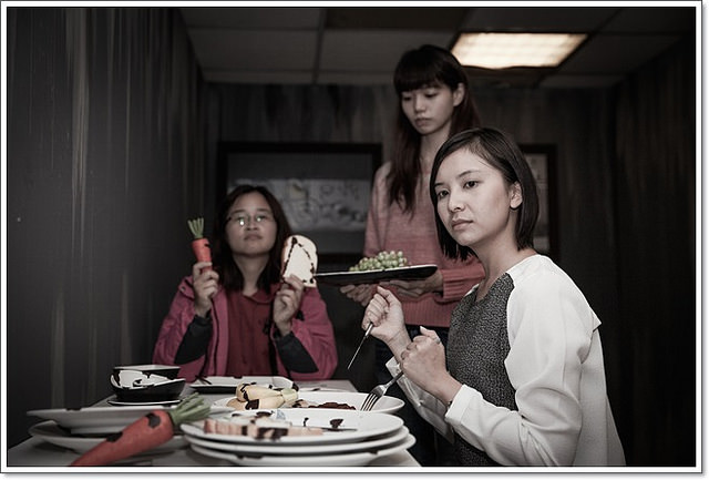 好嚴肅的表情哦! 對!氣氛就是要嚴肅, 好好思考,這桌上的一切代表什麼, 是誰留下了線索呢?兇手到底是誰呢?