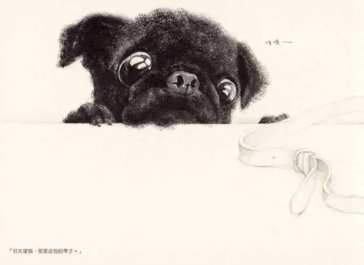 Q4、我們發現,書頁角落總會有個小小的對話框,總是呼應著小狗帕古的心情,這些話是來自小帕古內心的獨白、還是陪伴在旁的好朋友小蜜蜂,又或者是其他特殊的情感引導呢?