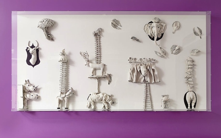 血液科病房外,簡單的籃色天空和綠色草皮,配上一棵棵大樹,構成了令人寬心的溫馨氣氛,即使沒辦法離開醫院到外頭走走,也許依舊能在走廊上找到一點清新氣息。而電梯外的陶器雕刻作品,將各種動物染成了白色,不曉得是不是為了幫孩子們,消除看見白袍醫生的緊張感呢?