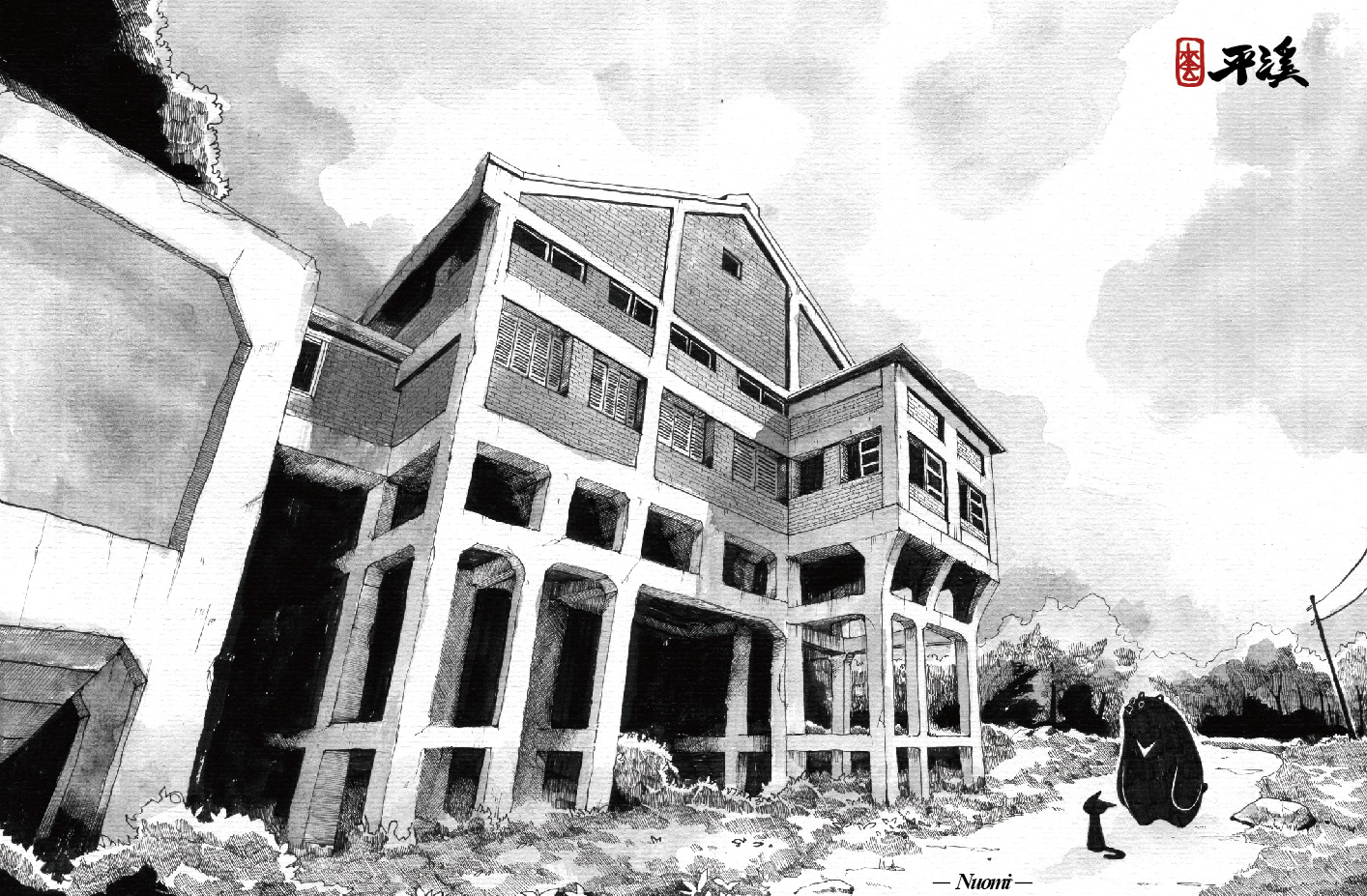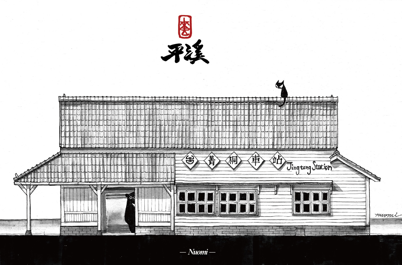 陳于峰(Nuomi),台灣插畫家,擅長在平面圖像中營造空間感,《旅行地圖》以實際的景觀作為基本故事背景繪製作品,藉由虛擬角色黑貓貓老闆以及台灣黑熊阿福之間的對話,進入台灣觀光景點更深度的地方獨特人文氣息與充滿想像的故事脈絡。