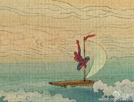 「夏阿」擅長中式古畫風,前幾天發表了這幅八仙過海臨摹圖,仔細一看卻是西洋英雄們在海上載浮載沉的有趣模樣,當然最重要的「八仙過海各顯神通」也忠實呈現,每位超級英雄雖然穿上的飄飄古裝,手中的渡海工具也還是自己的隨身武器,就算沒有實體武器的人,也會應景地吃個棒棒糖或者貼塊狗皮膏藥,中西合併的結果讓場面有點混亂卻依舊充滿樂趣,每個細節表情都忍不住想一看再看。
