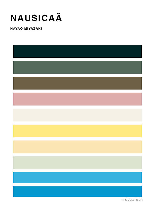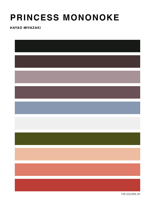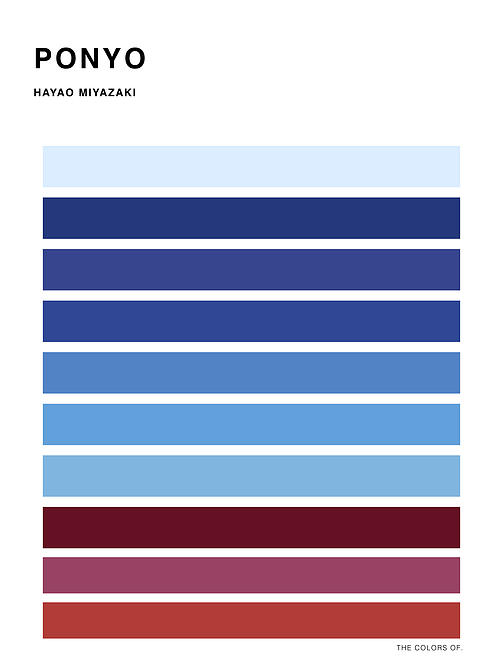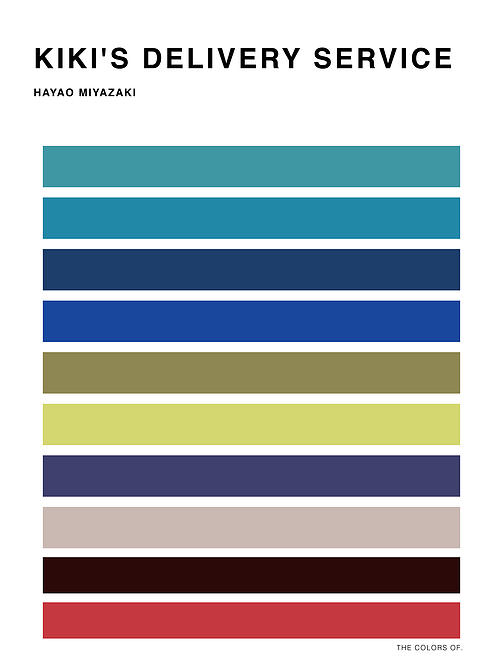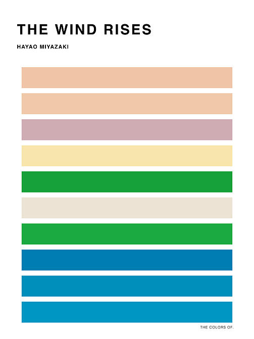 雖說如果不看片名,其實幾乎很難聯想到對應的故事,色調選擇也相當主觀(《魔女宅急便》怎麼可以沒有黑色 >"<),但這其實也不失是一組有趣的概念式海報設計,畢竟動畫海報雖然經典,但卻還是太過可愛了,掛在房間可能有些不好意思,若是轉化為色條元素,就算在牆面貼個一整排也不覺突兀,反而很有設計師的調調呢~