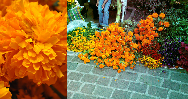在墨西哥的傳統裡,人們以萬壽菊(金盞花)表達對死者的尊重與祝福,更是用來慶祝亡靈節的主要花種。from wiki