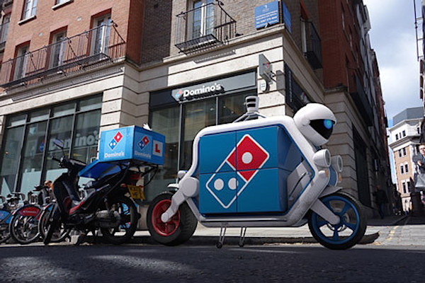 英國的達美樂發表了全球第一檯無人自動外送機。並從四月一日開始,在英國從網站或是app上下訂單,就會收到由這台兩輪的自動外送機「Domi-No-Drivers」送來的pizza。
