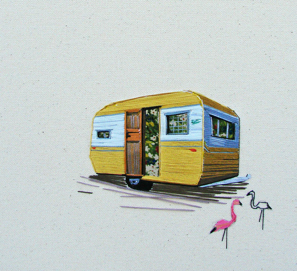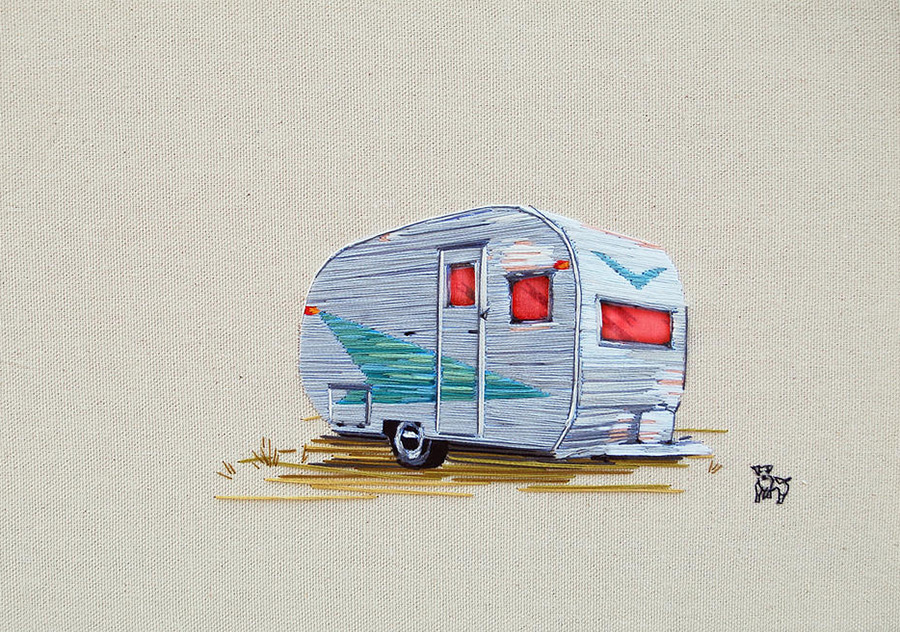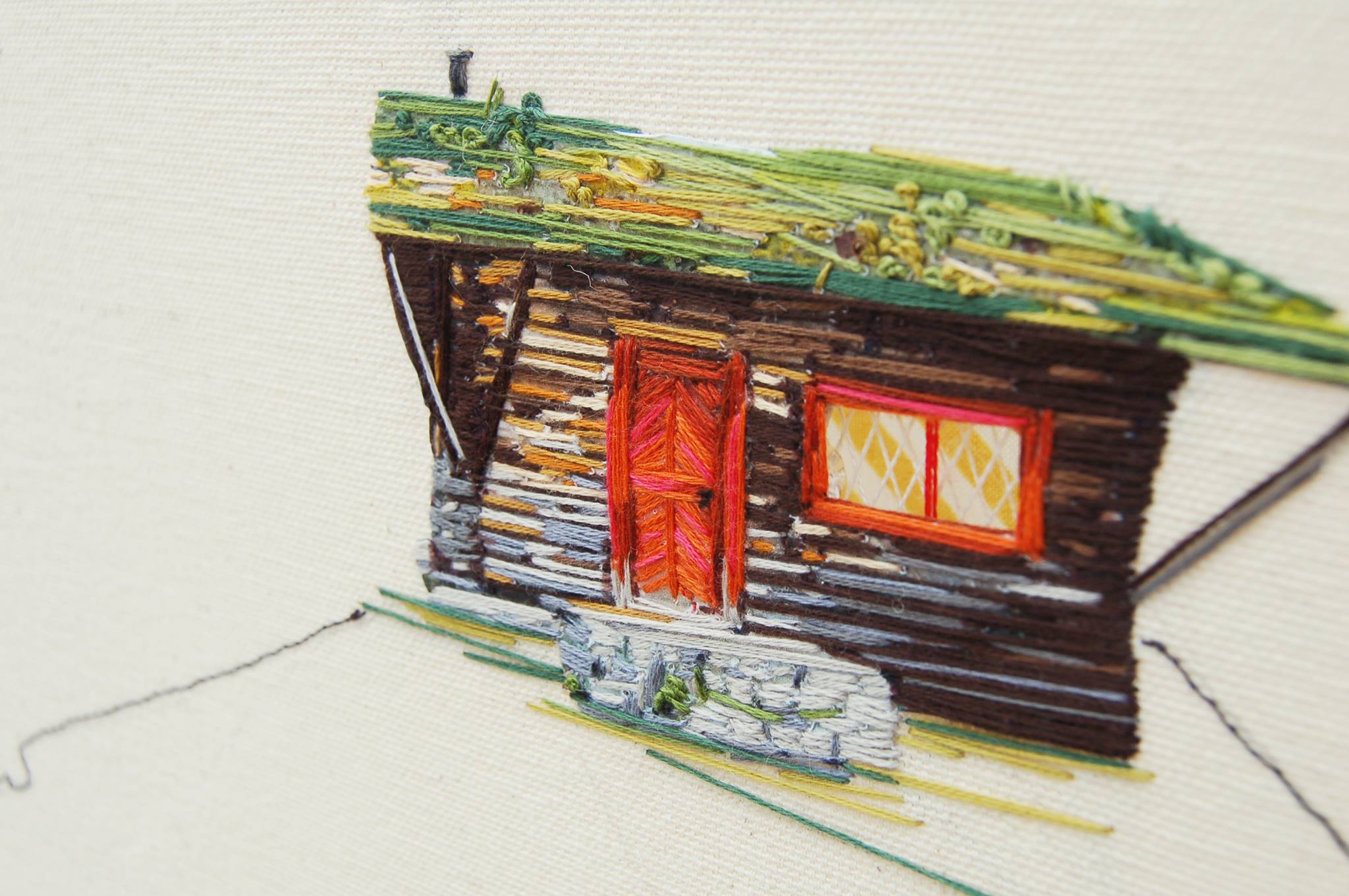 美國鹽湖城藝術家 Stephanie K Clark 的作品,乍看之下,會以為和一般的畫作沒什麼兩樣,只是越看越覺得她的筆觸、用色挺特別的,這才發現原來這不是畫,而是刺繡。
