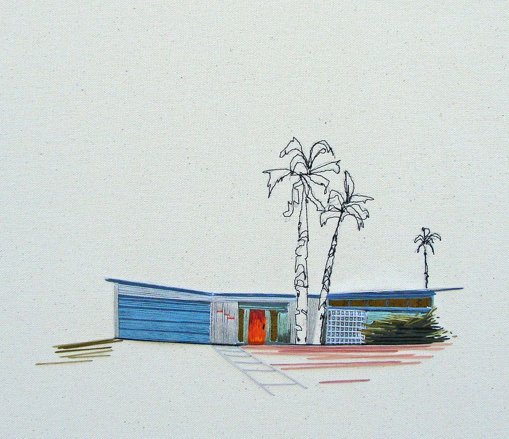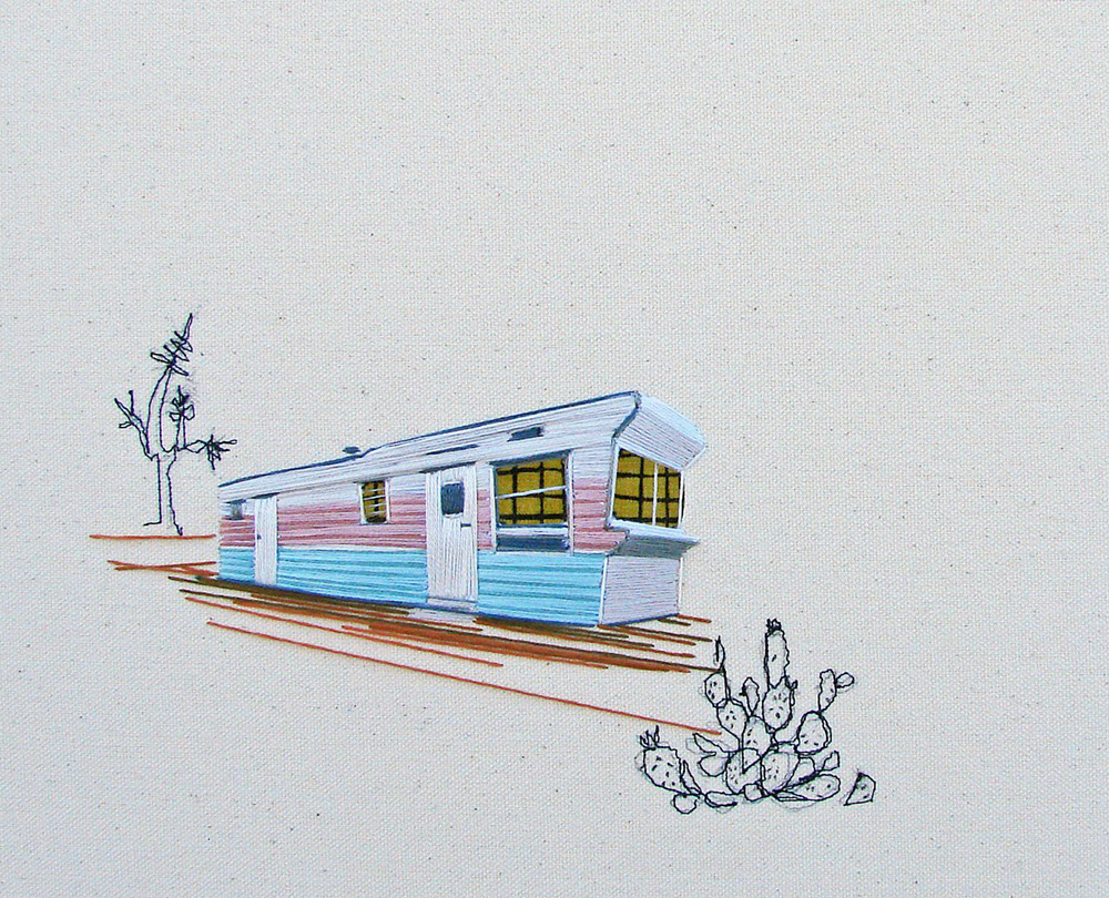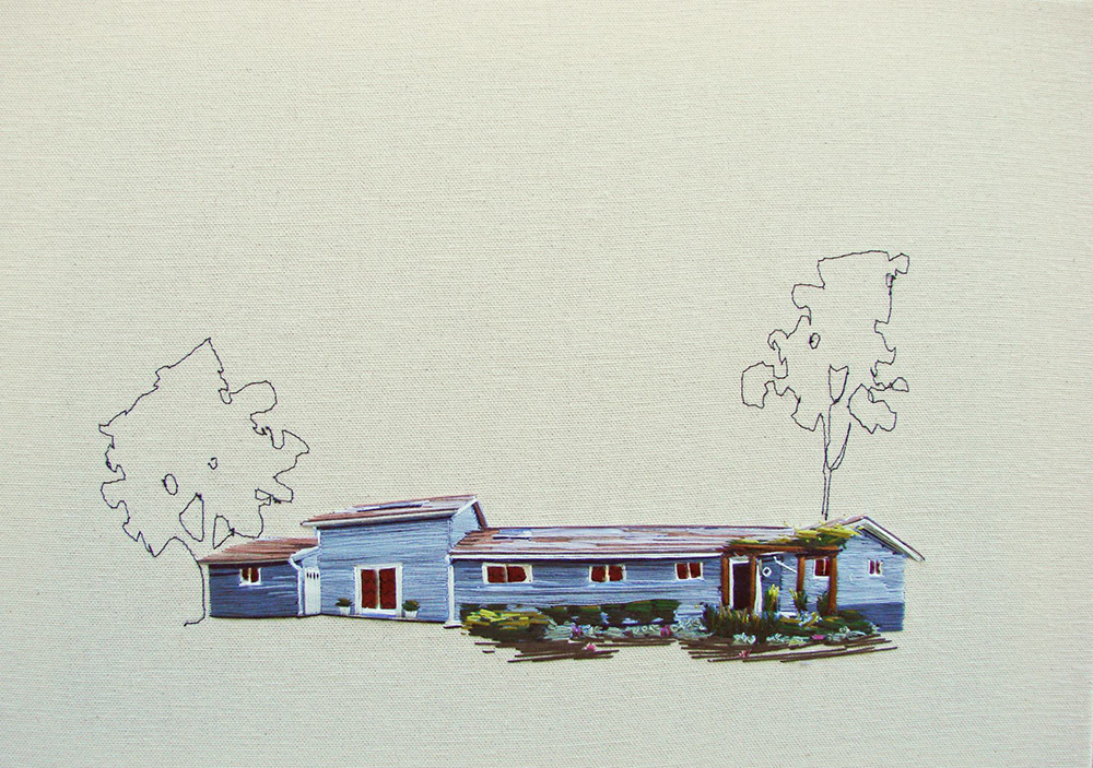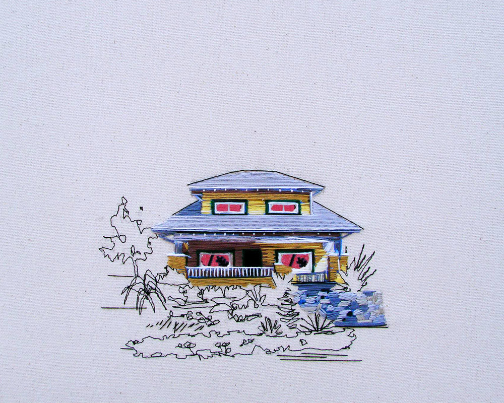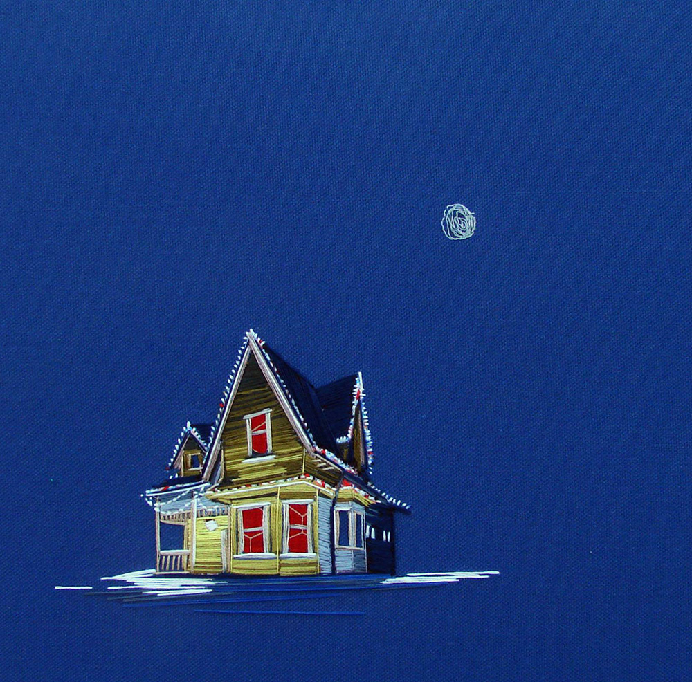 Clark 將一間間房子繡成畫,或者被朝氣蓬勃的陽光照耀著,或者身處在寧靜的夜裡,或者被一團團花叢包圍,或者有幾棵仙人掌陪伴,又或者只有一隻小狗在旁窩著。無論是什麼樣的房子,透過繡線的表現,總是令人訝異著她的用色與用心。Clark 以一棟棟房子為主題,希望透過她的刺繡,能夠傳達出家庭的溫馨氣氛,和大家分享每個家庭的故事。