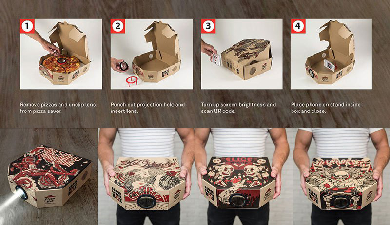 現在走在街上,時不時就可以看見有人用手機看韓劇或電影,不過就算是6吋的手機螢幕,看久了還是會累,如果有辦法換成更大的螢幕,那該有多好?最近香港的必勝客和廣告公司 Ogilvy & Mather 合作推出的特製披薩電影盒,就將智慧型手機變成電影投影機,在家一邊吃披薩,一邊看電影,真是輕鬆愜意。