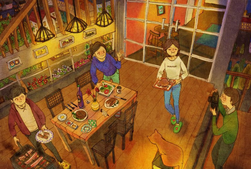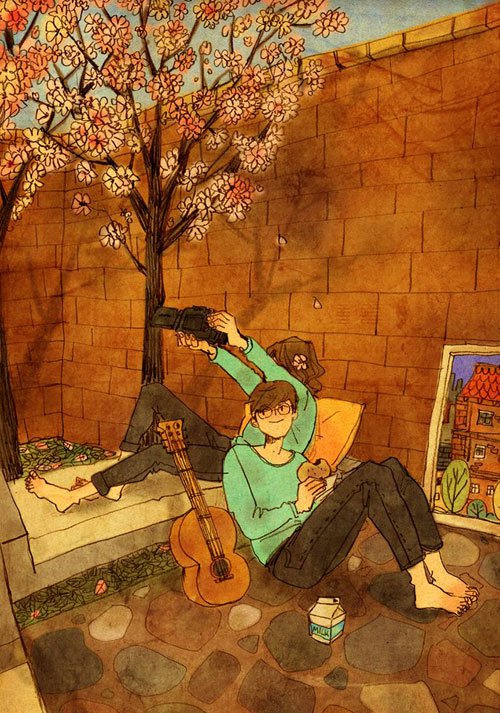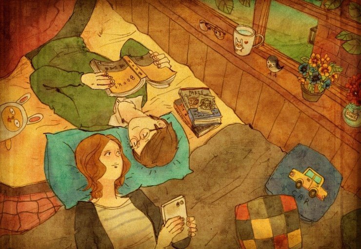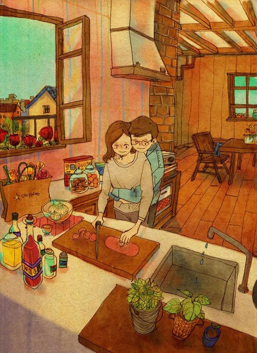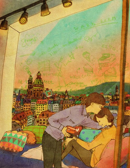「等到風景都看透,也許你會陪我看細水長流」,歌曲之所以經典,在於文字觸碰到了人心最柔軟的部份,影像當然也是,韓國插畫家 Puuung 在 Grafolio 上分享了關於愛的作品「Love is...」,在他的筆下,愛是一起幫貓咪洗澡、早上一起睡眼惺忪地刷牙、一起看恐怖片、一起在假日午後打個小盹,沒有轟轟烈烈的激情,只有偶爾親親額頭或環抱著對方,人人都渴望這樣的愛情,卻不是每個人都能幸運擁有,不過至少在 Puuung 的筆下,我們彷彿也能嚐到一絲清淡雋永的甜密,讓心情好上許久!