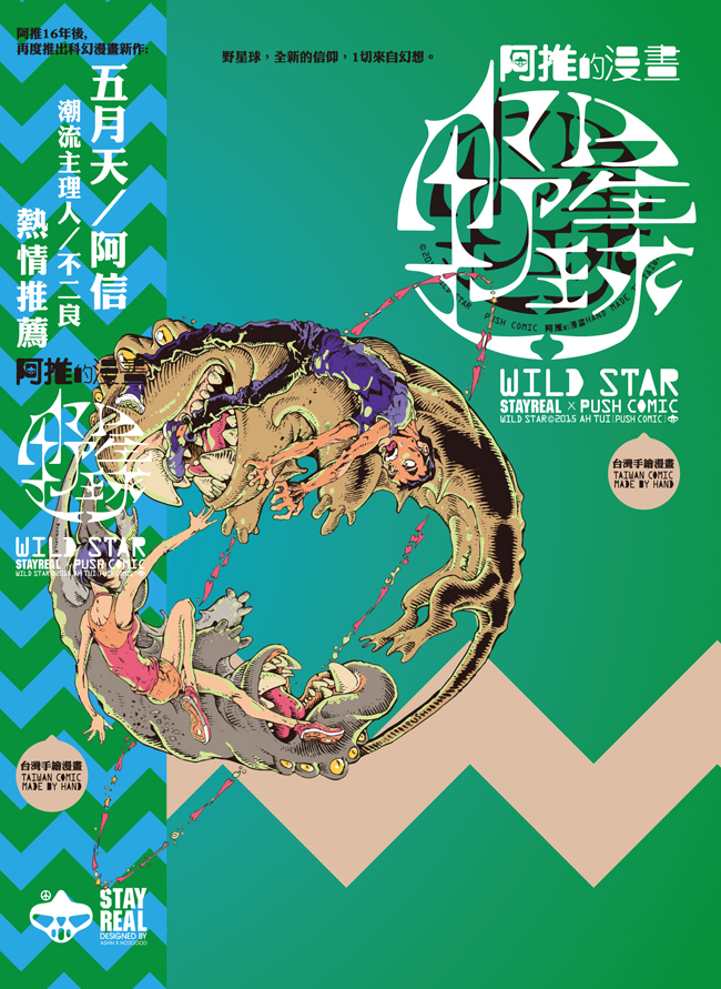 已於 6/19 出版的《野星球》漫畫經過漫長兩年的籌畫時間,而漫畫出版僅僅是一個開端,緊接著在 6/26(五),STAYREAL 將舉辦【STAYREAL x 阿推 野星球漫畫展】以及【STAYREAL x 阿推 野星球漫畫見面會】,一系列的漫畫舞台正如火如荼展開中,並於見面會現場開賣《野星球》精裝版,並為了回饋漫迷漫長等待原價 $980 只要 $799 就能把精裝版帶回家收藏並隨書贈送《野星球別針組》,精裝版數量有限賣完為止!