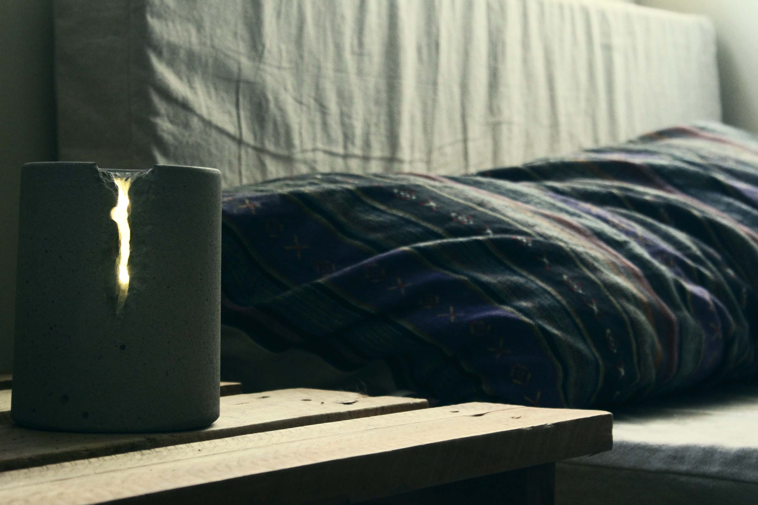 城市裡散發出隱晦的微光,是帶著手工溫暖的 Damp Lamp,以水泥仿造自然細節,呈現大自然的氣息,讓生活在城市裡的人回歸最初的自己。 『Damp』是潮濕,沉悶的意思,受到台北這個潮濕的城市所吸引,希望可以將氤氳美感以創作物表現。燈具是個最快改變空間氣氛的物件,經過許多嘗試後,發覺水泥調性與溫度獨具特色,開始研究如何用水泥作出燈具,『Damp』因此誕生。
