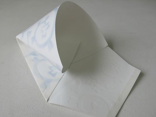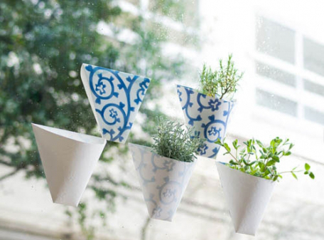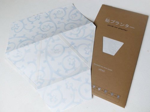 像是今天為大家介紹的紙花器「貼(てん)プランター」,打開包裝後,看起來就像是有著淡雅花紋的包裝紙,然而摺疊成口袋的形狀後,撕開上頭的膠帶,就能黏在玻璃等平滑的牆面上,放上植栽,立刻成為辦公室內最小巧可愛的盆栽,不只美化、綠化了環境,配合花器上素雅的紋路,就好像遠方吹來的清新空氣一樣,舒緩了緊張沉悶的辦公氣氛。