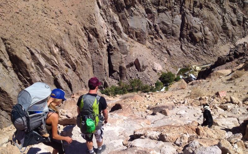 小 Bennett 雖然很酷,但畢竟還只有兩歲,在某些"兒童不宜"的路段就會窩進 Bennett 老爸的背包裡當個小包袱,伏在爸爸背上一起攀山越嶺。