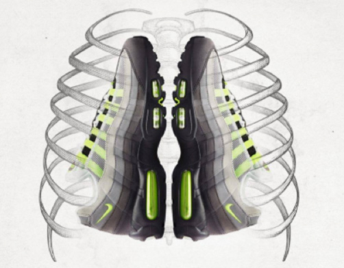 設計師Sergio Lozano說:「說實在話,我相當喜歡這些新版本,如果一件事情只能有一種表現方式,那就不酷了。我知道有一些設計師,以及他們嚐試的新外型都很不錯,它們把這雙鞋子帶往一個新的領域。」Air Max 95面世20週年,Nike找來一些具有代表性的Air Max 95鞋款,並還原人體解剖室的情境一同展出,向最原始的設計概念致敬。