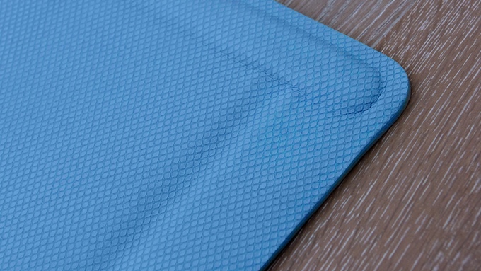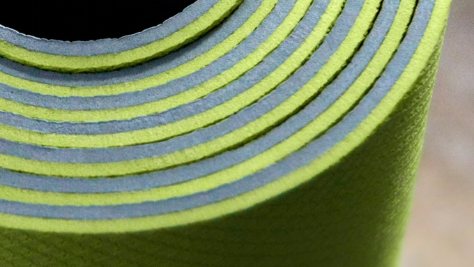 拉近點來看,YoYo Mats 正反面的防滑紋路能有效的增加摩擦力,實際使用墊子的確不容易滑動。而且 YoYo Mats 以 TPE 為材質製成,不僅環保無毒,觸感摸起來柔軟舒適,同時也兼具韌度不怕做瑜珈做到一半時,摔得四腳朝天(汗)。