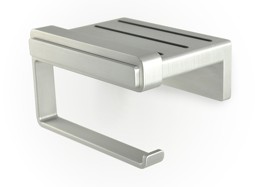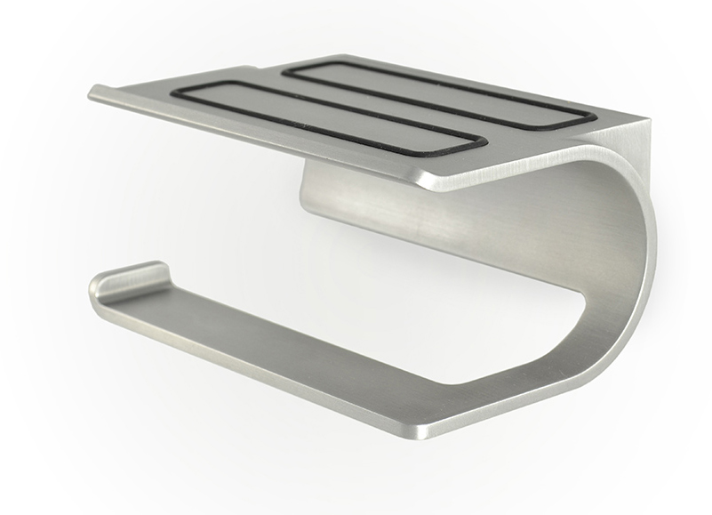 由 Axis Design 設計的 LooLedge 捲筒衛生紙架,可說是專為這個智慧行動世代所設計的衛浴用品,平台上有防滑膠條和擋片,一體成型的設計簡潔俐落,時尚的髮絲霧面銀和你的手機向互輝映,堪稱是滾筒衛生紙架界的 Apple 也不為過吧!