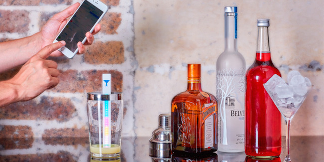『 MixStik 』是一款能夠與手機配對的智慧調酒棒,它是這樣使用的:打開 MixStik 並透過藍芽與你的智慧型手機配對,在手機上的 APP 選擇一種雞尾酒, MixStik 上就會依比例亮出不同顏色的 LED 燈,你只需要將 MixStik 放進容器中,依指示加入配料就能輕鬆完成一杯雞尾酒了!
