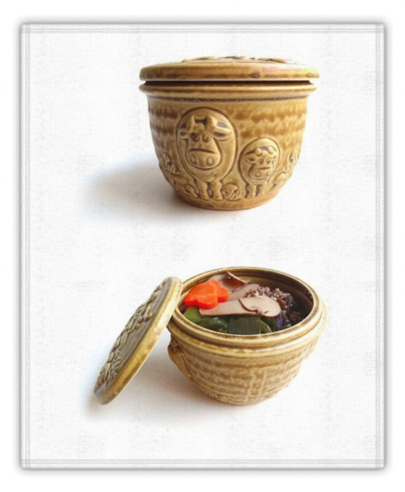 日本著名的松茸淋上壽喜燒醬,再配上熱騰騰的白飯,放在有著可愛小牛在上頭的特製紀念陶碗中,突然覺得......日本的鐵路便當好像都不惜重本啊!
