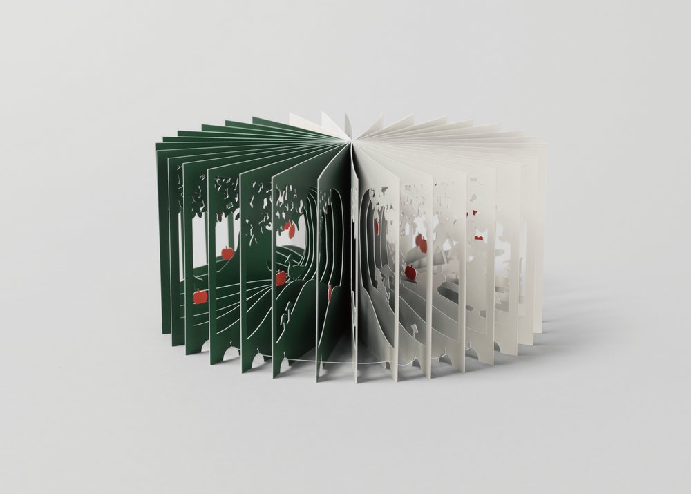 除了《Mount Fuji富士山》之外,建築師大野友資也以經典童話《白雪公主》為主題做了立體書《白雪姬》,場景是一棵大樹,故事就籠罩在繁茂的枝葉下。