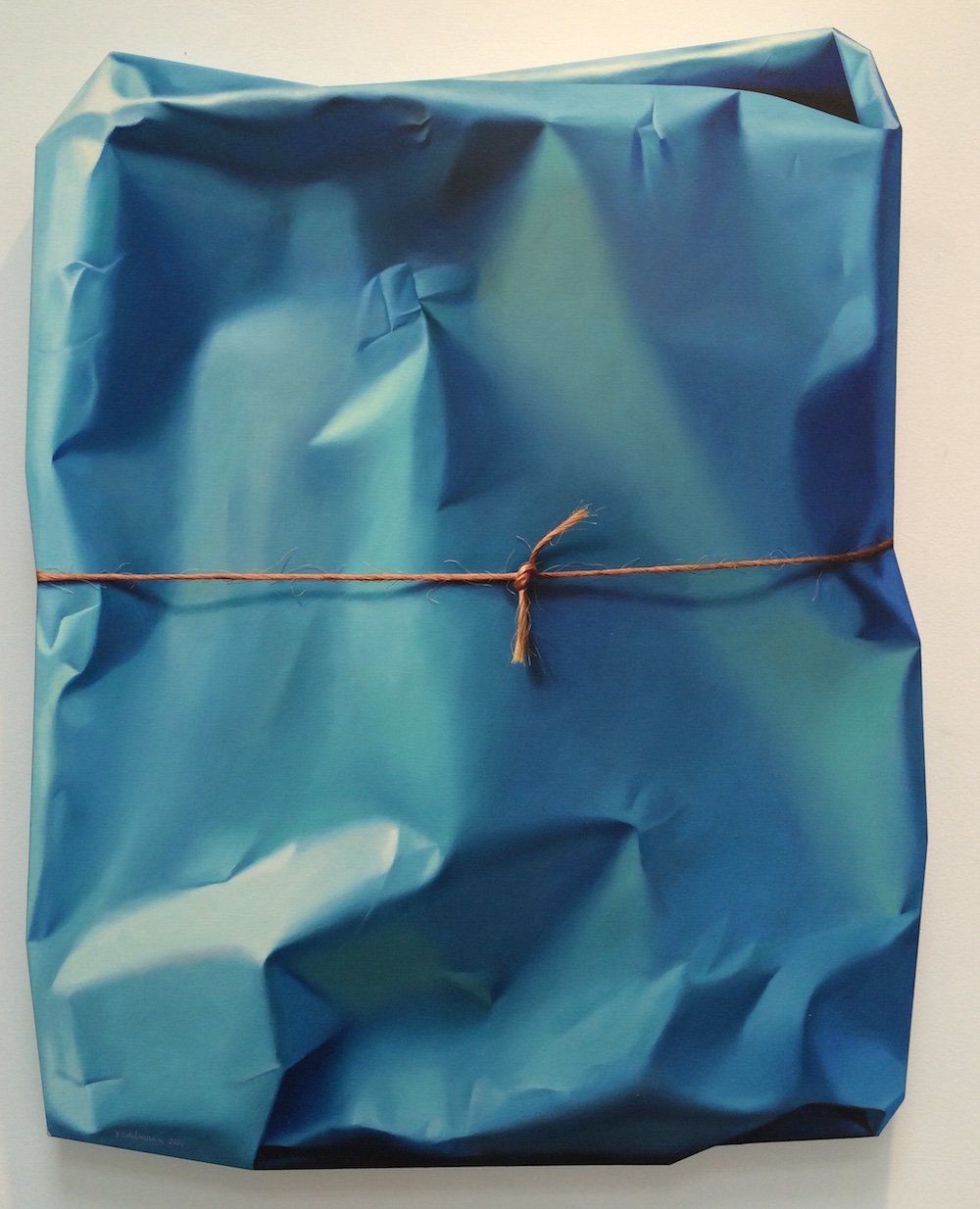除非是精品名牌,否則外包裝紙通常是第一個壯烈犧牲的可憐蟲,更何況是圖片中這種走隨興路線的自然派包裝法,不過這回有點不一樣,因為它們都不是可以被拆開的實體物品,而是 Rjo Edelmann 用油畫顏料擬態出來的平面畫作!