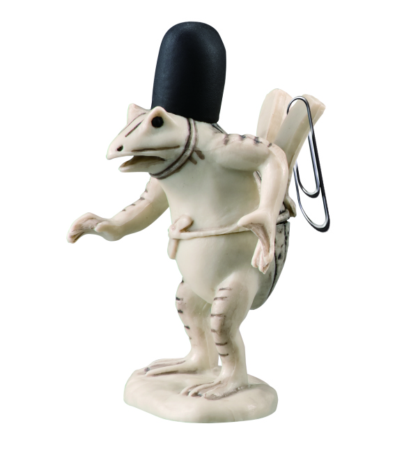 鳥獸戲畫扭蛋共有六種款式,四公分高的青蛙、兔子、貓、狐狸等動物,或者戴頂黑帽、表情詼諧的握著筆,或者奮力蹬起雙腿、夾起名片,或者使出吃奶的力氣(是說...青蛙吃奶嗎?)撐起手機,或者撩起尾巴勾著橡皮筋,生動的表情和姿勢不禁令人莞爾,而且這些扭蛋可沒有因為自己是扭蛋,就只甘願當個玩具,它們走的全都是辦公桌收納實用小物路線呢!如果興致再高點的話,還能將所有動物排排站好,自己寫劇本,排出自己想看的戲畫,絕對讓苦悶的上班生活多一點樂趣。