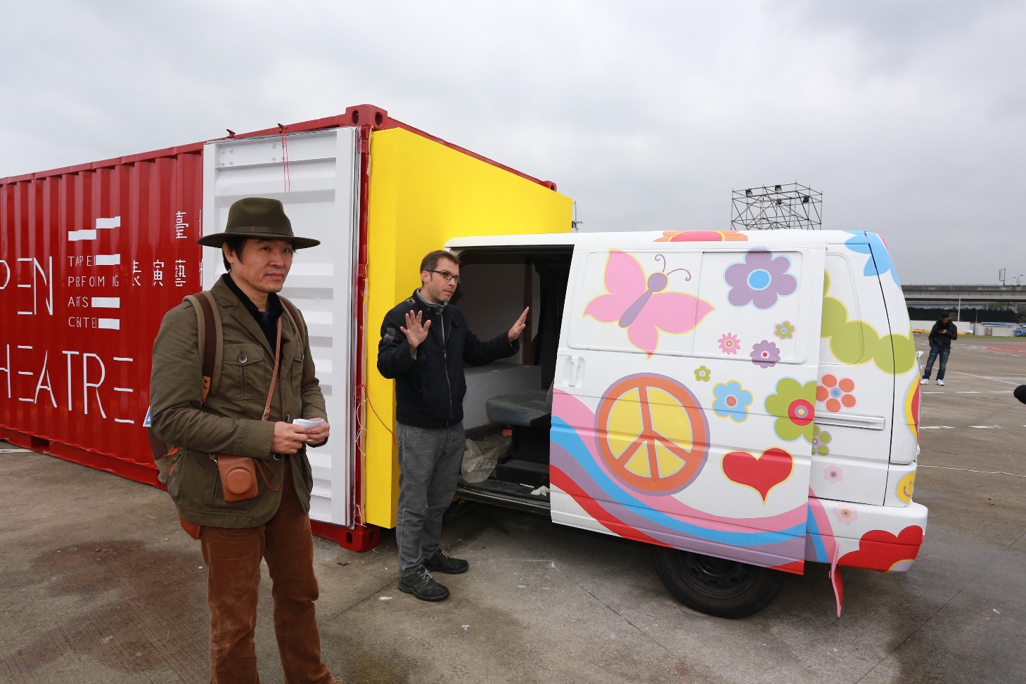 臺北表演藝術中心貨櫃與車子相結合,民眾可坐進車裡體驗3分鐘微劇場