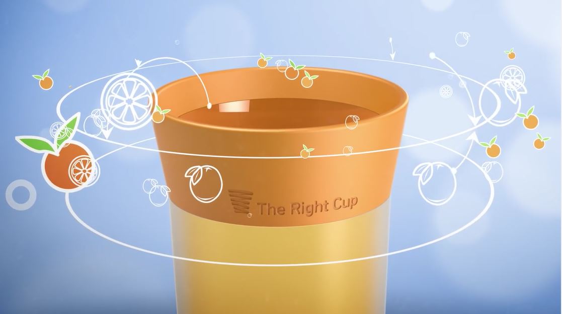 Right Cup 採用經美國食品藥品管理局(FDA)核可的水果芳香風味劑(也是一般飲料裡會添加的),但是並不是加在水裡,而是將其置入在杯子的設計裡,讓使用Right Cup的人能直接聞到“水果香味”,暗示負責味覺的舌頭要反映出“甜味”。這樣一來,你的大腦被誤導相信你喝的是美味的“加工水”,但實際上你喝的是天然、健康的水。