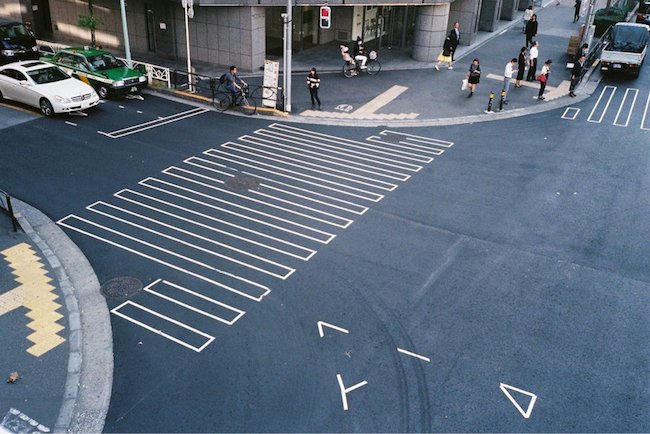 設計人常說「Less is more.」,這個道理在這裡或許不能完全通用,但從Andreas Kofler的鏡頭看出去,至少給人一種「Less is enough」的感覺。而且從這些標線中還能看出日本人對於規劃的重視:即使無法一天內快速完成,但在大家需要使用道路的時候,可以用臨時標線來取代,以降低人們用路的困擾。
