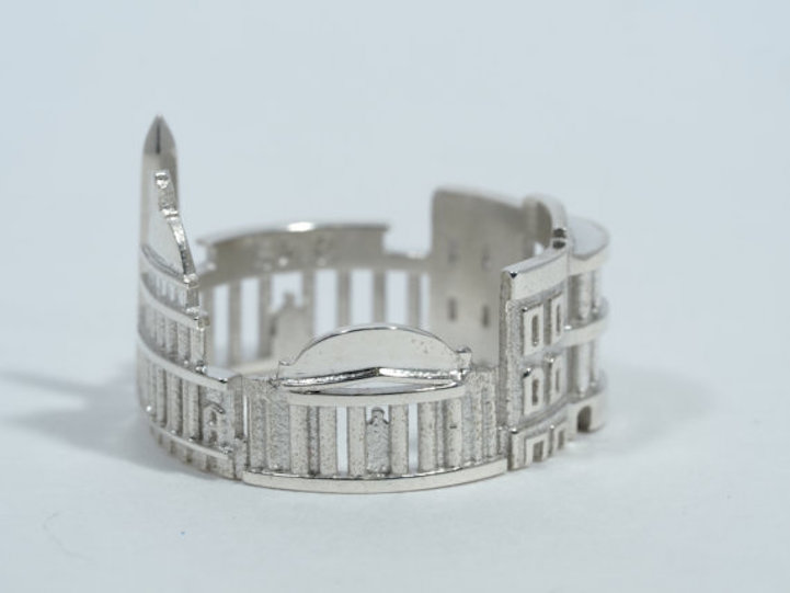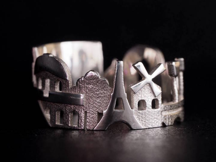 這些戒指將各大城市中最知名的天際線, 全都「剪」成環狀的縮影, 戴在手指中,而且每根手指一個戒指,就好像一手掌握了全球各地的建築之美,所有吸睛度最高的城市剪影都逃不出手掌心。