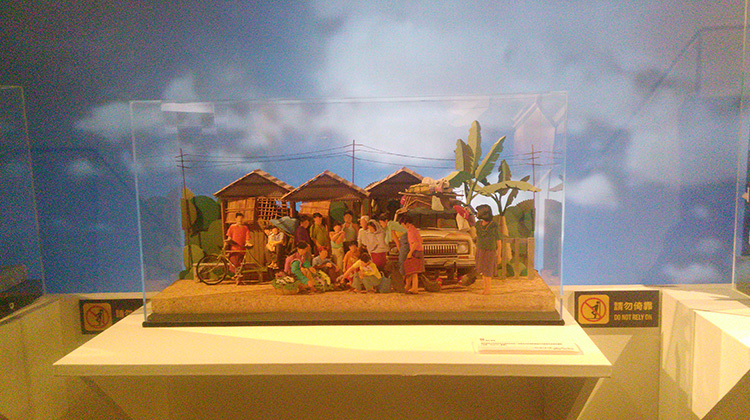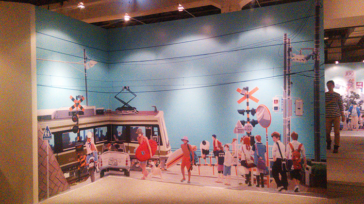 這次展覽中,可以看到許多民眾站在巨幅背板面前拍照,這幅背板主題是人氣動畫灌籃高手中,晴子與櫻木在夕陽西下時,回眸相視一笑的平交道,透過3D設計,民眾看起來就像是作品中的一份子。