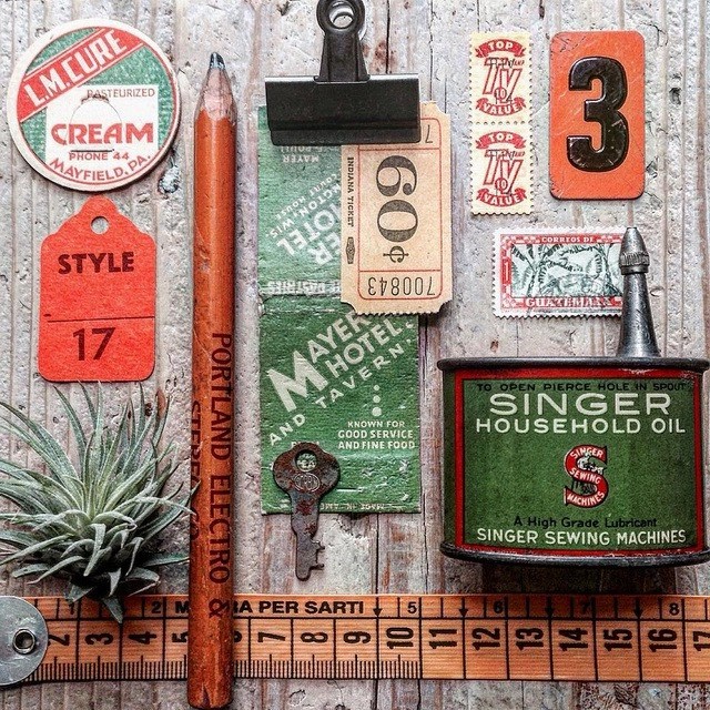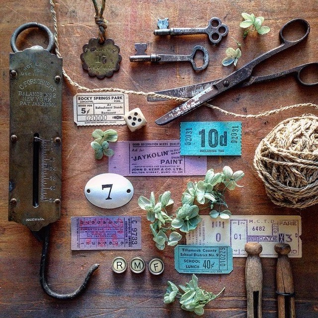 有人用咖啡開啟一天,而 Maki 則是每天早上,都會先拍攝一張復古物品的攝影,才開始一天的工作。是自己對編排、美感、攝影的順練,同時也把這一件件老舊的物品,輔以其他配飾,在攝影機下,又成為另一種樣貌展現出來。