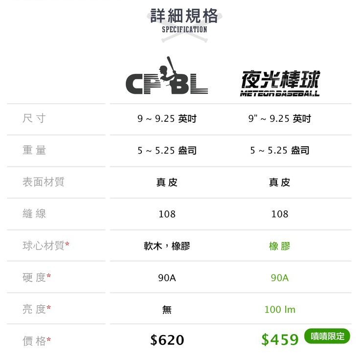 臺灣團隊改造棒球結構,將 LED 燈柱嵌入棒球內部,搭配一顆可替換的電池,可以發出 100 流明的光長達五小時,足以打完一場完整的球賽。夜光棒球已經 獲得臺灣專利,目前正透過群眾集資尋求球迷支持,將產品帶入量產商業化的階段。