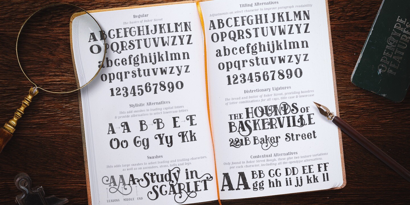 以福爾摩斯的偵探風格為靈感,字都互相勾勾纏!