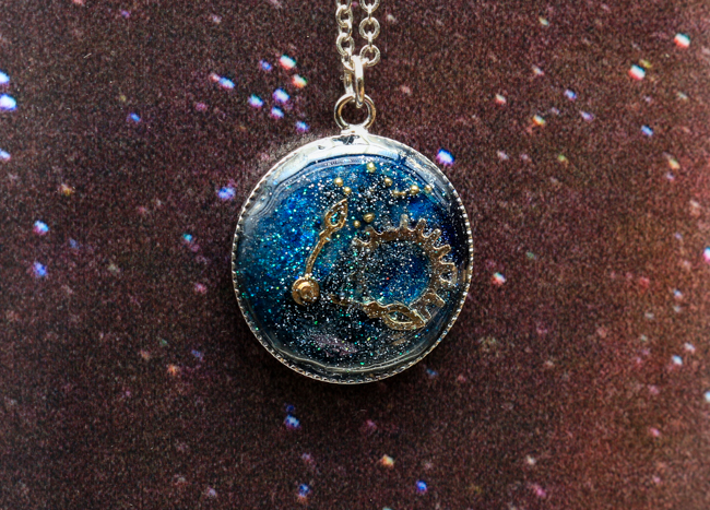 透明的球體包覆著繁星點點,展現了 UV 樹脂精緻無比的一面,Sunny 在自己的部落格上表示,原本師承日本知名的珠寶黏土課程,以製作超擬真的甜點模型以及珠光飾品為樂,約莫去年偶然接觸 UV 材料後,便開使嘗試新的創作素材,甚至愈玩愈有心得,開發出許多迷人的作品。