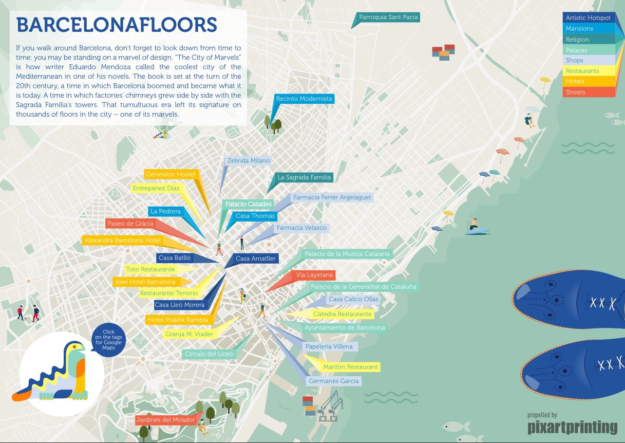 德國攝影師 Sebastian Erras 和 pixartprinting 網站合作,實地走訪西班牙巴塞隆納,拍下這座城市中每個美麗的地磚。它們有些在飯店附近,有些在餐廳前的人行道上,Sebastian Erras 特地穿上得體的皮鞋入鏡,和這些美麗的地磚們相互呼應,充滿歷史感的城市藝術,確實讓人眼睛為之一亮!