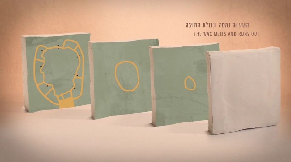 為了去年十二月,在耶路撒冷以色列博物館登場的 Hadrian Exhibition,這支片長不到五分鐘的動畫,詳細介紹了以脫蠟法鑄造銅像的完整過程。停格動作與 2D 動畫的搭配演出,巧妙地運用橫切面的視角,完整呈現了每個階段模具內材質的變化。