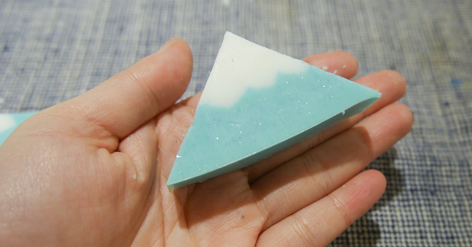 三角形肥皂很適合拿來搓平常搓不到的縫隙,像搓指甲縫或洗領口都很適合。另外,因為是富士山肥皂,特別推薦加入木質味的精油喔!