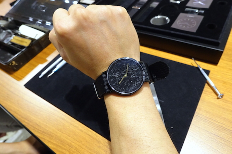 黑錶框、黑錶組、黑尼龍錶帶,從頭黑到尾的配色似乎是大宇的定番組合。不過眼前的黑不是黑,你說的白是什麼白,這個組合中藏有設計人的小巧思,大宇選擇了帶有大理石花紋的 Marble 系列,替沉穩低調黑色系,增添一點活潑感與大自然的氣息。