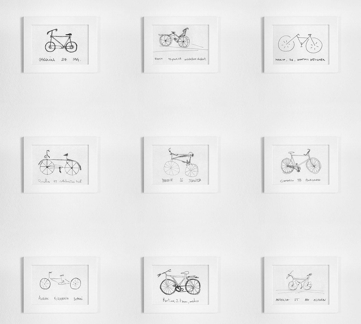 Gianluca Gimini 觀察到人們面對到這個突兀的請求時,腦子通常會先打個結,開始搜索思考腳踏車的印象,努力想將細節具體畫在紙上。對於擅長畫畫的人來說,畫一台腳踏車的困難度應該不高,但對一般人來說可就不是這樣了,所以 Gianluca Gimini 如願地收集到很多有趣的筆稿,有些根本沒有鉸鍊、有些忘了畫踏板,有些輪胎則狂野地像是一台越野機車,讓 Gianluca Gimini 整個收穫滿滿!