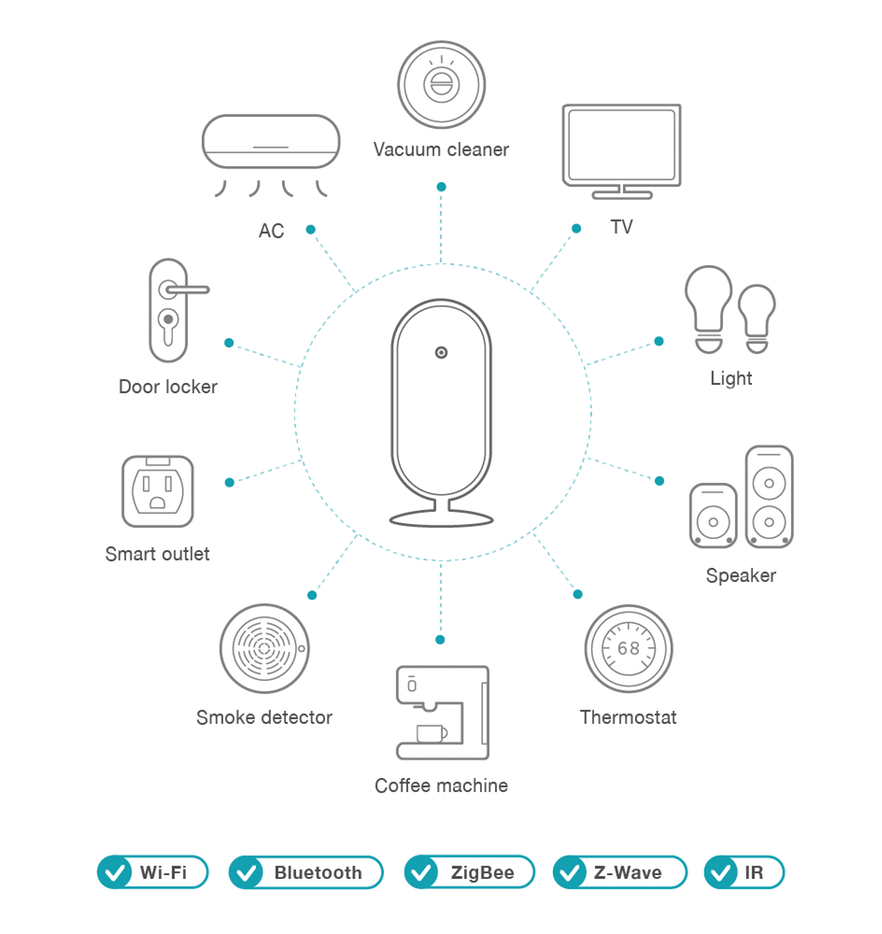 SmartAll 提供多種連線方式:Wi-Fi、藍芽,還有傳統家電使用的 Zig-Bee、Z-Wave跟紅外線。讓家中各式家電可以透過 SmartAll 串聯在一起,提供更好的生活體驗。