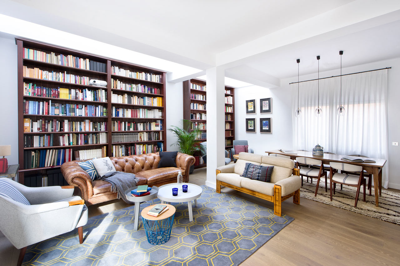 依照屋主的喜好,Egue y Seta 將客廳其中一面牆做成大書櫃,用來收納這對書蟲夫婦們的龐大藏書,再把原本窗戶整片打掉改成落地窗,引進大量的自然採光之後,彷彿也重新燃起這間屋子的生命力,變成更適應這個時代的生活空間。
