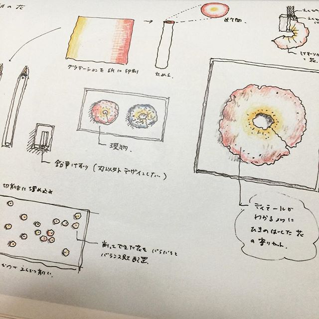 三澤遙從以前就很迷戀削鉛筆的木屑,木片順著刀緣片出的捲捲曲度,而且每次削都會出現細微不同的變化,好像花瓣一樣,讓她愛不釋手,於是有天她思索,能不能讓這些木屑看起來更像花朵呢?她嘗試從電腦印出帶有花紋的紙,然後再手工將紙張緊緊地捲成筆管,最後的重頭戲,當然就是「削」這個動作了。