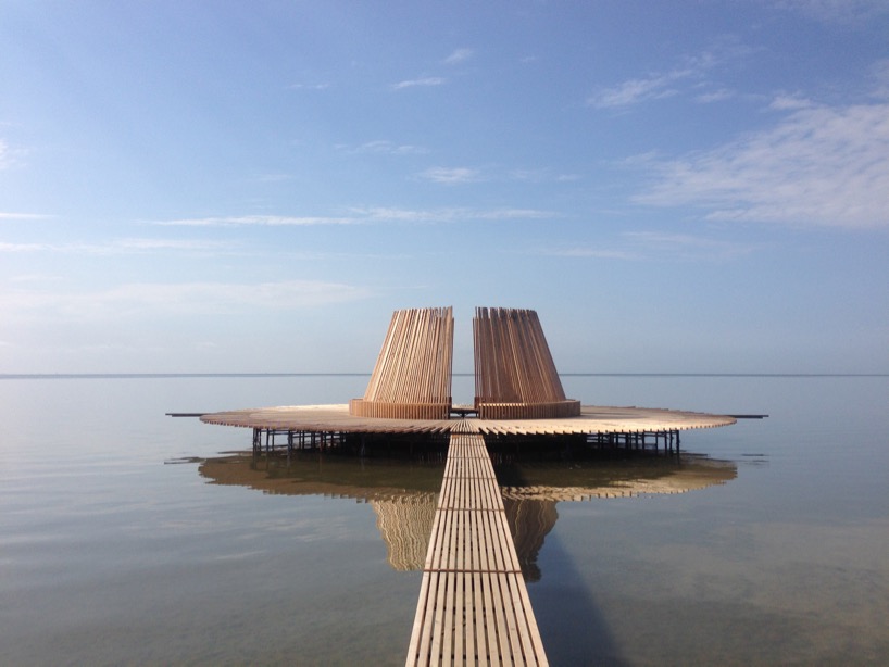 時間的流逝,彷彿只能從每天日升日落來感受、觀察,而自古以來,留在世界各地用來見證這個奇蹟的建築物,吸引著人們前來朝聖,即便過了每年的6月21日,時序從春天正式轉換到夏天,白天佔據一天的比重逐漸縮小,依舊如此。藝術家Marc Van Vliet在荷蘭北部所設立的木造建築物 drie streken,隨著潮汐的變化而如同花一樣開合著,同樣帶領人們一同感受大自然律動的規律。